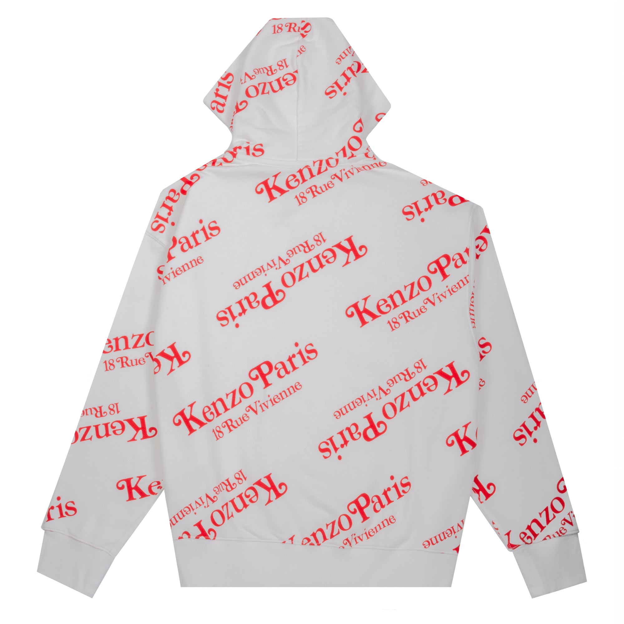 This hooded sweatshirt is the result of a collaboration between Nigo and Verdy. The design is decorated with an all-over vintage-inspired 'KENZO Paris 18 Rue Vivienne' monogram print. The oversized fit gives it a modern streetwear silhouette.