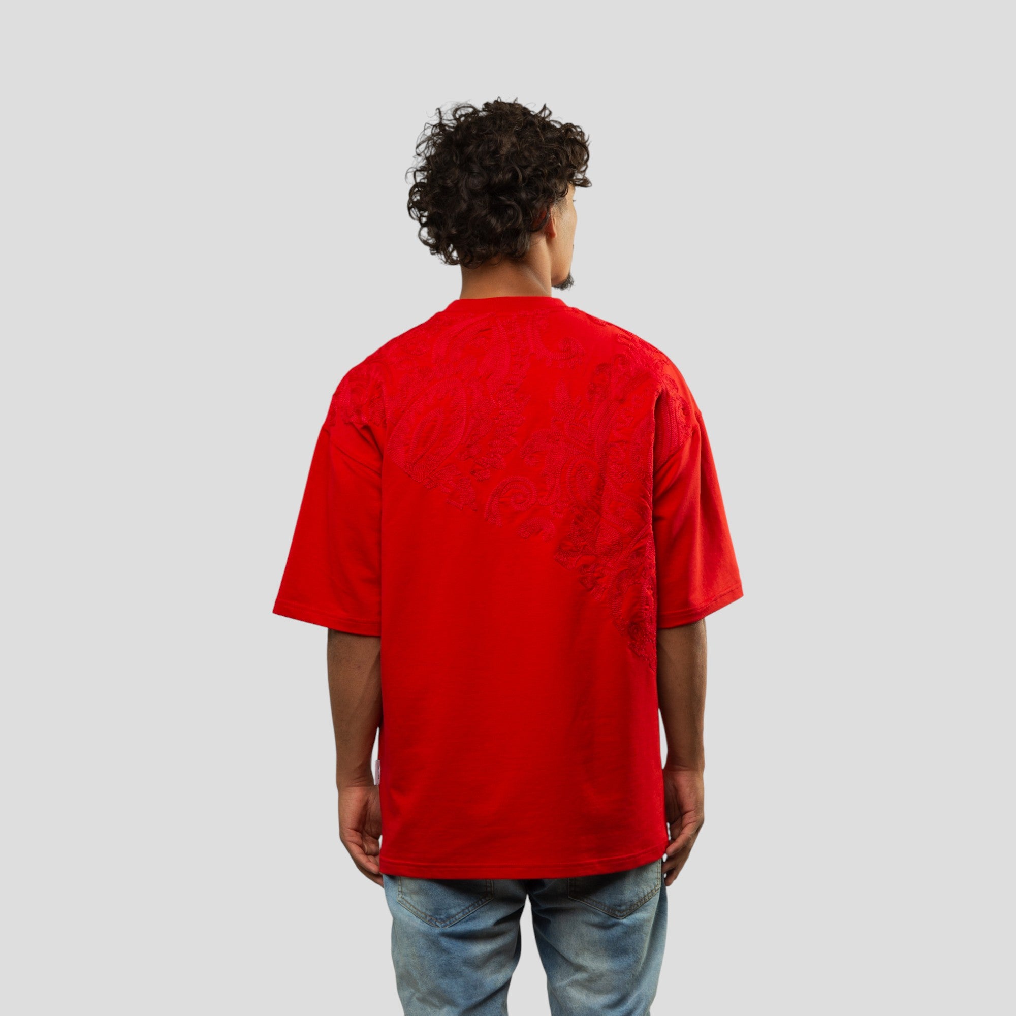 Elevate your everyday rotation with the Blanc Kanvas “Tree of Life” T-Shirt, a standout piece that blends comfort with artisan-level detail. Made from 100% cotton in a relaxed oversized fit, this crew-neck tee is designed for easy wear and bold expression. The wrap-around embroidered detailing flows across the front and back, giving the shirt a textured, elevated feel, while the artistic cut-and-sew patch on the front adds a handcrafted finish. Offered in versatile Red, Black, and Beige, this tee is built to be the focal point of any streetwear look.