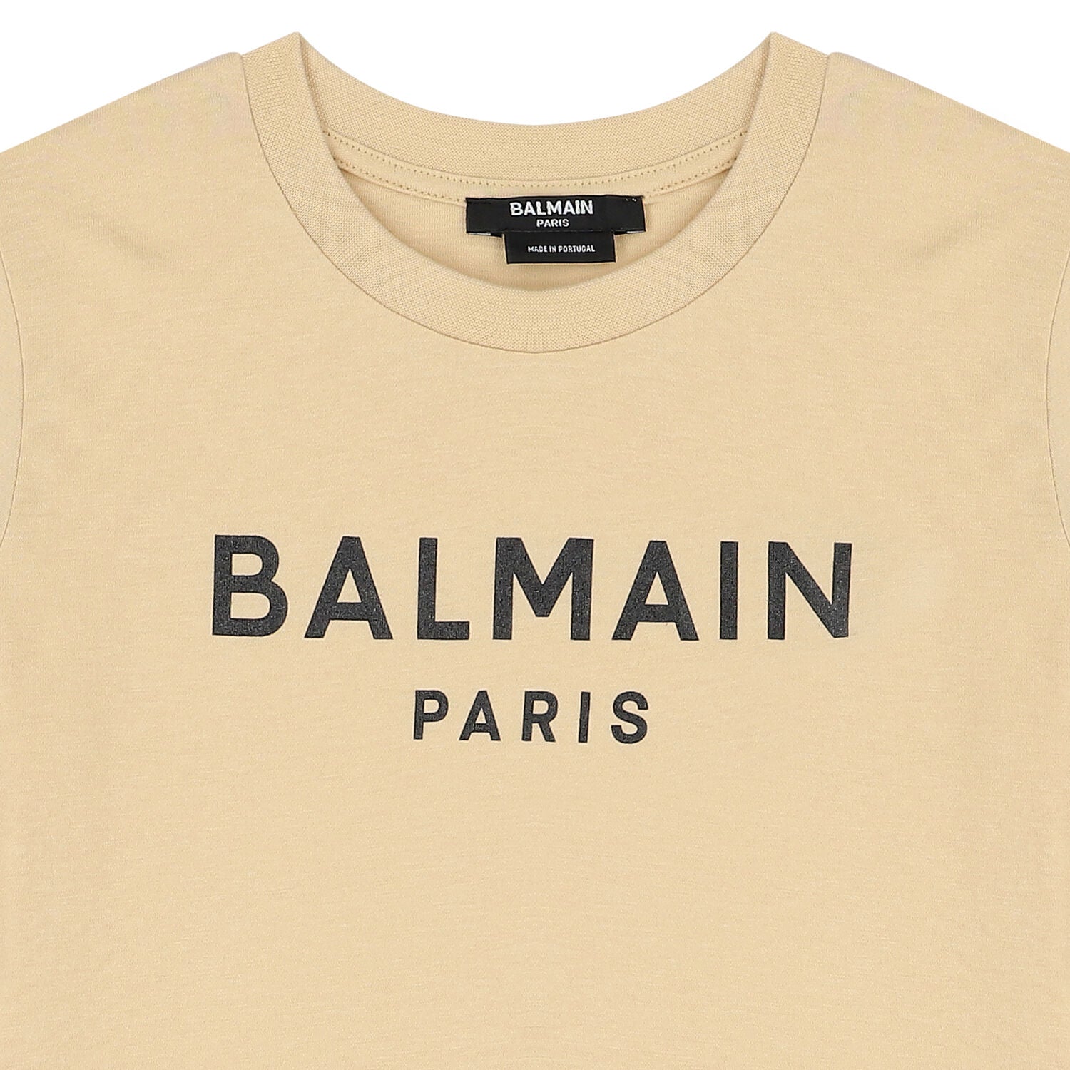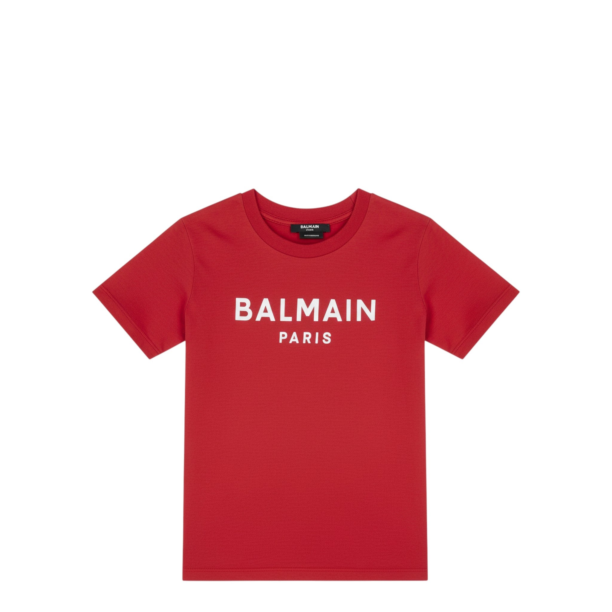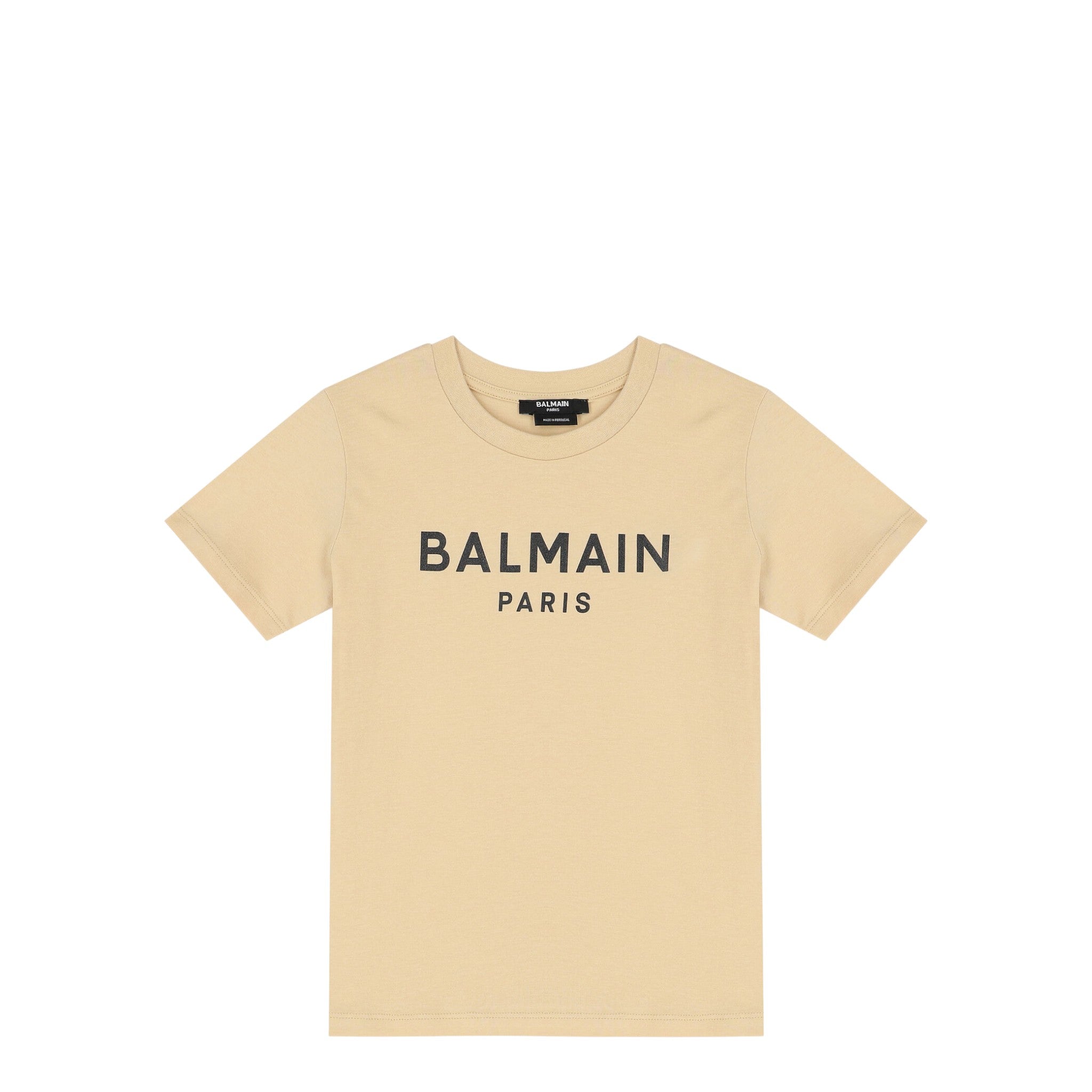 The t-shirt features a timeless design, highlighted by a contrasting "BALMAIN PARIS" logo print across the chest, making a subtle yet unmistakable designer statement. It is completed with a classic crew neckline and a straight hem. Many of these iconic t-shirts are expertly crafted in Portugal.