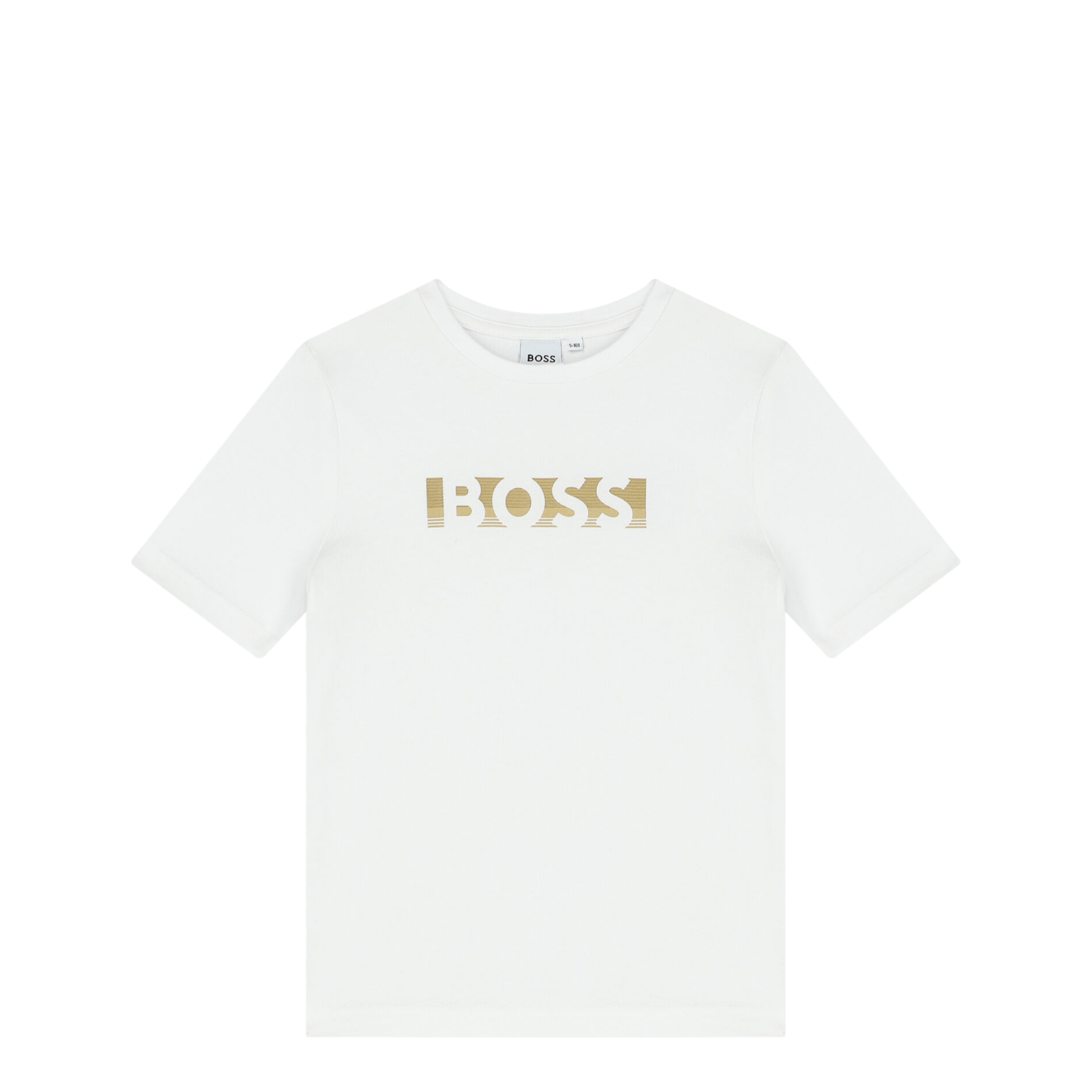 Add a touch of luxury to your child's casual collection with this BOSS Kids Gold Logo T-Shirt. This elevated staple perfectly combines the brand's sophisticated aesthetic with everyday comfort, making it an ideal choice for fashion-forward kids.