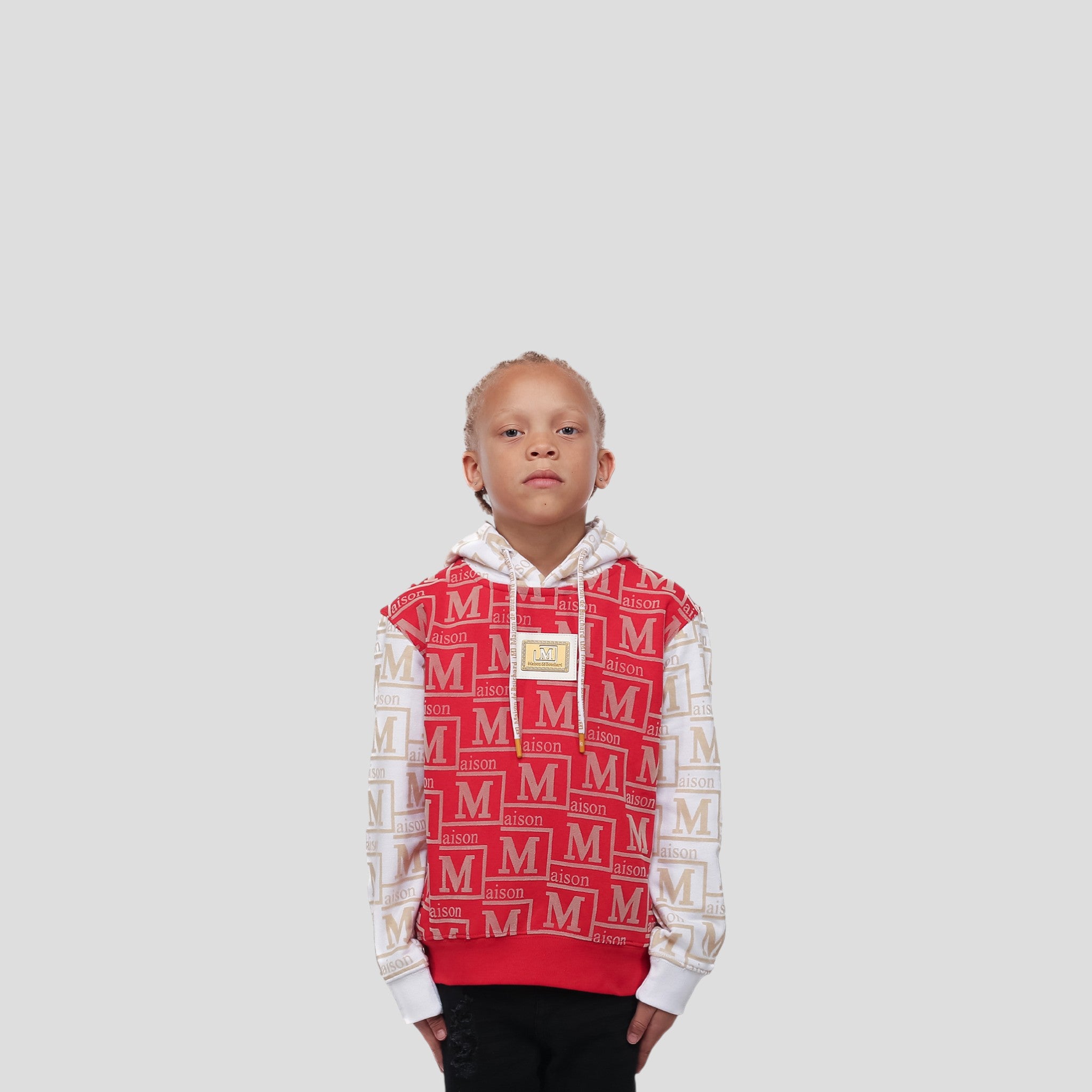 A premium kids’ hoodie that blends comfort, texture, and bold MDB Couture identity.